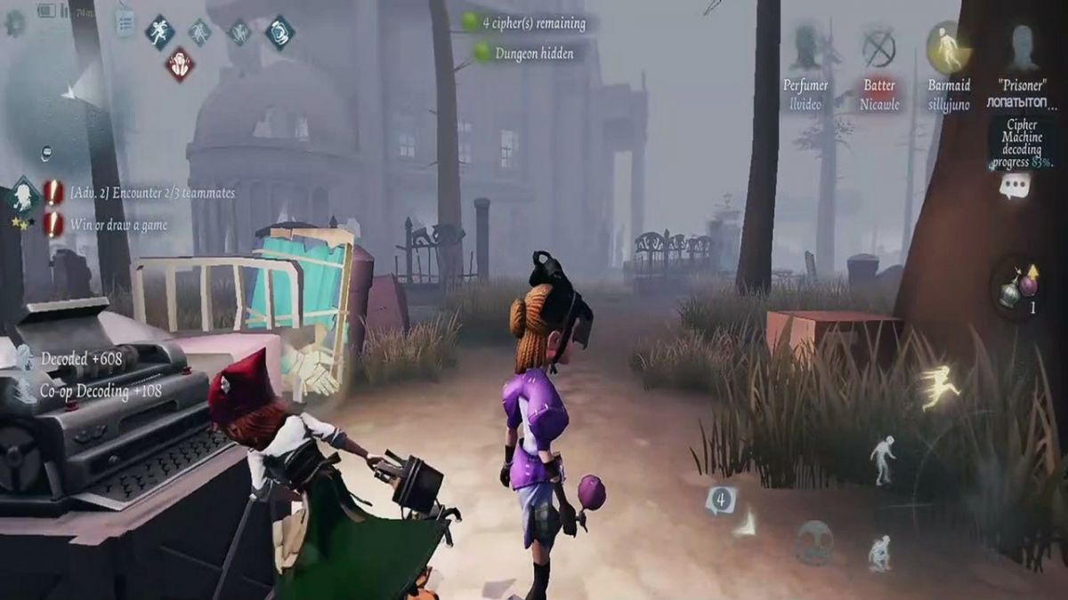Now, how does one navigate this world of terror? In Identity V, players can choose to play as either one of four survivors or as a terrifying Hunter. Survivors must work together to decode cipher machines scattered around the map, all while avoiding being captured by the Hunter. The thrill lies in the tense chases, as you and your teammates attempt to outsmart the Hunter, solving puzzles under pressure, and trying to escape the looming threat. Meanwhile, as the Hunter, you must track down and catch the survivors before they manage to escape. It’s a strategic battle of wits and agility, as every move you make could change the course of the game.